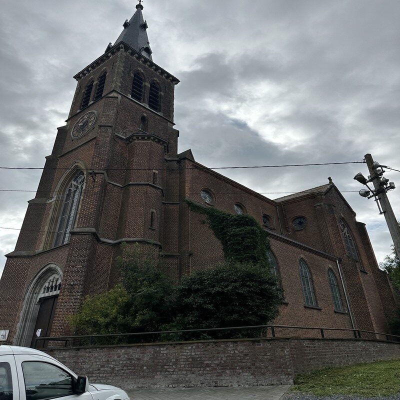 Travaux sur les corniches de l'église Saint André d'Audregnies
